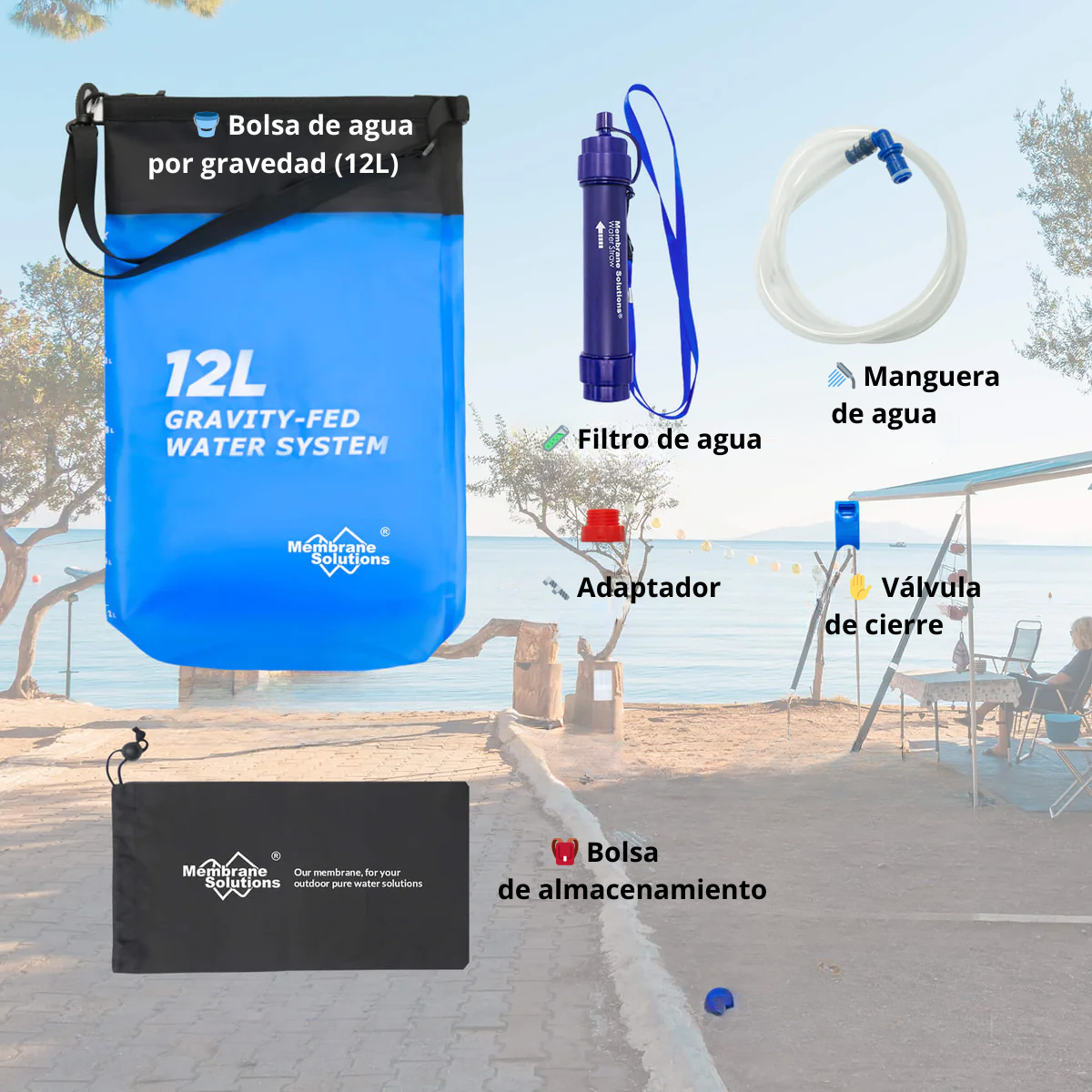 Filtro de Agua por Gravedad 12L para Camping y Outdoo